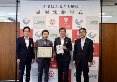 丸井陸運株式会社様から、下呂市が取り組む観光客誘致対策事業に対して企業版ふるさと寄附をいただき、井ノ浦健代表取締役に感謝状を贈呈しました。