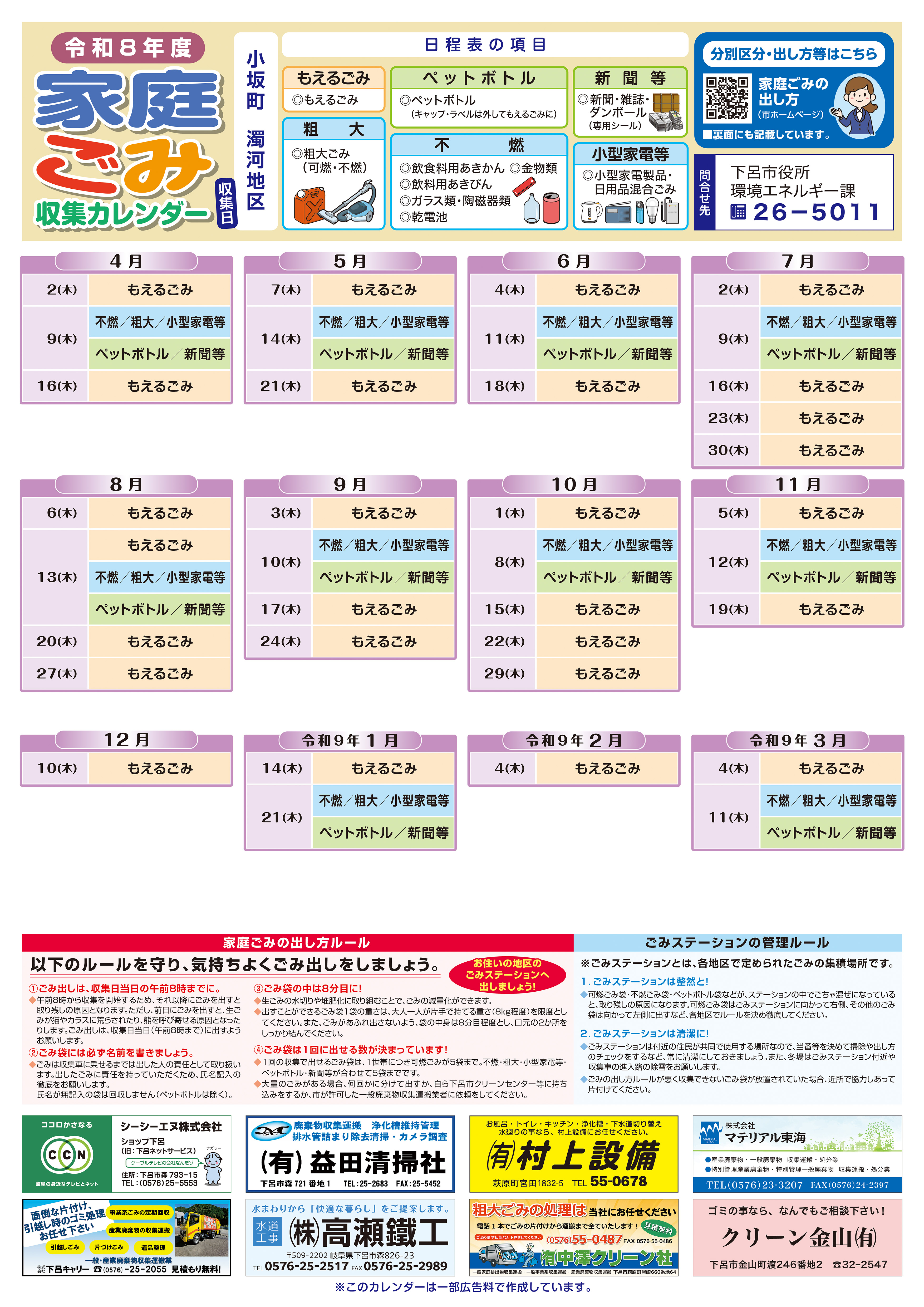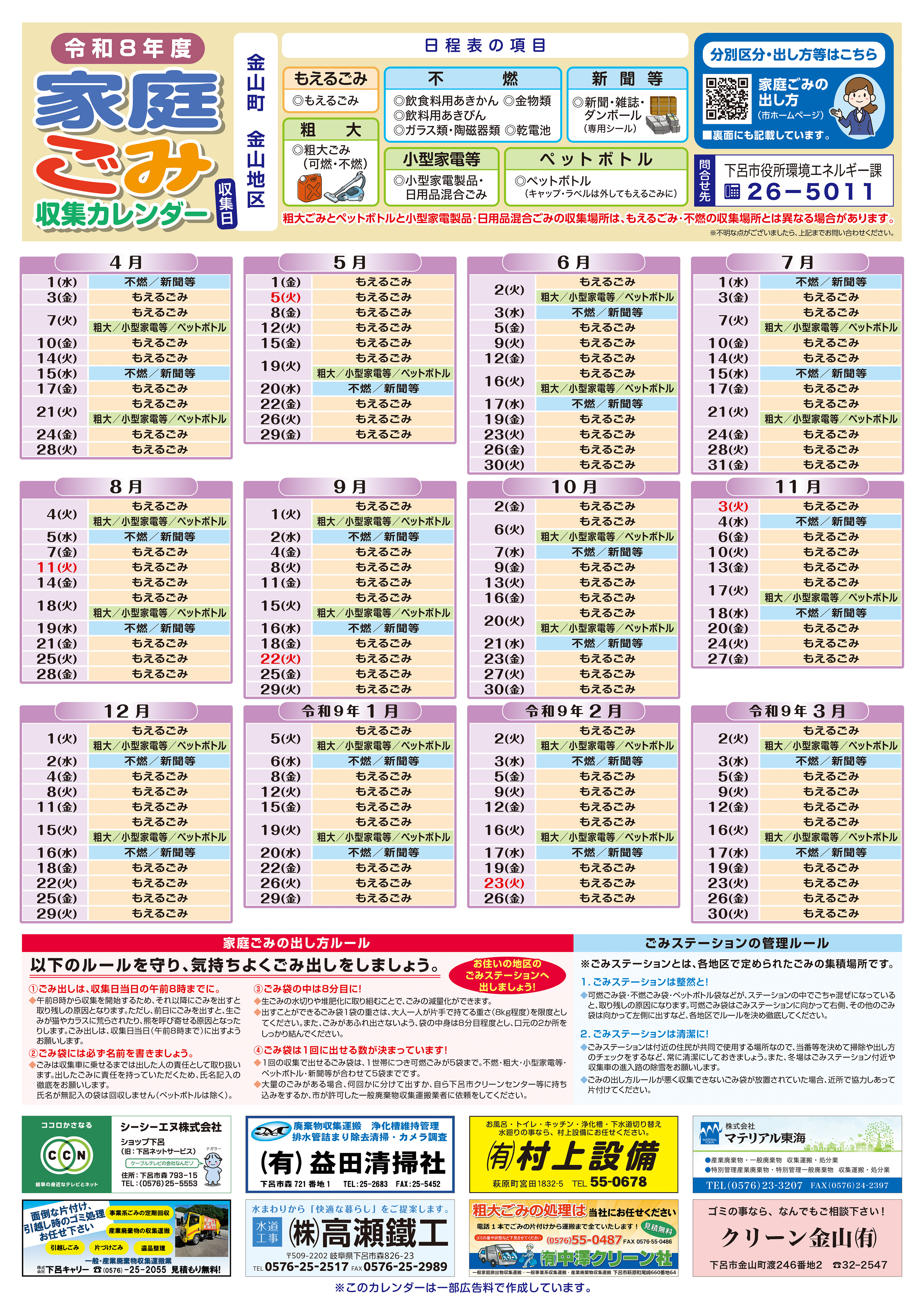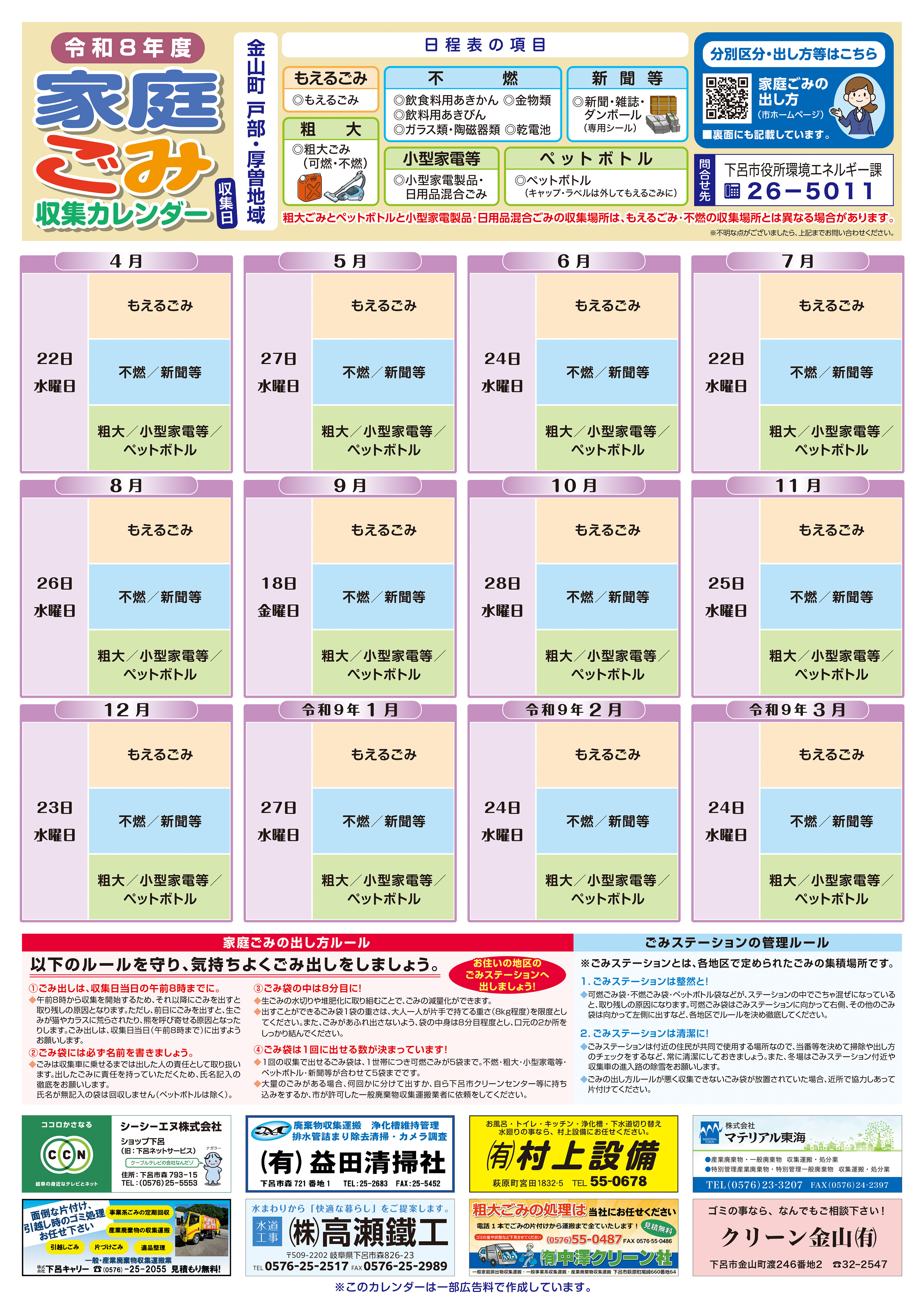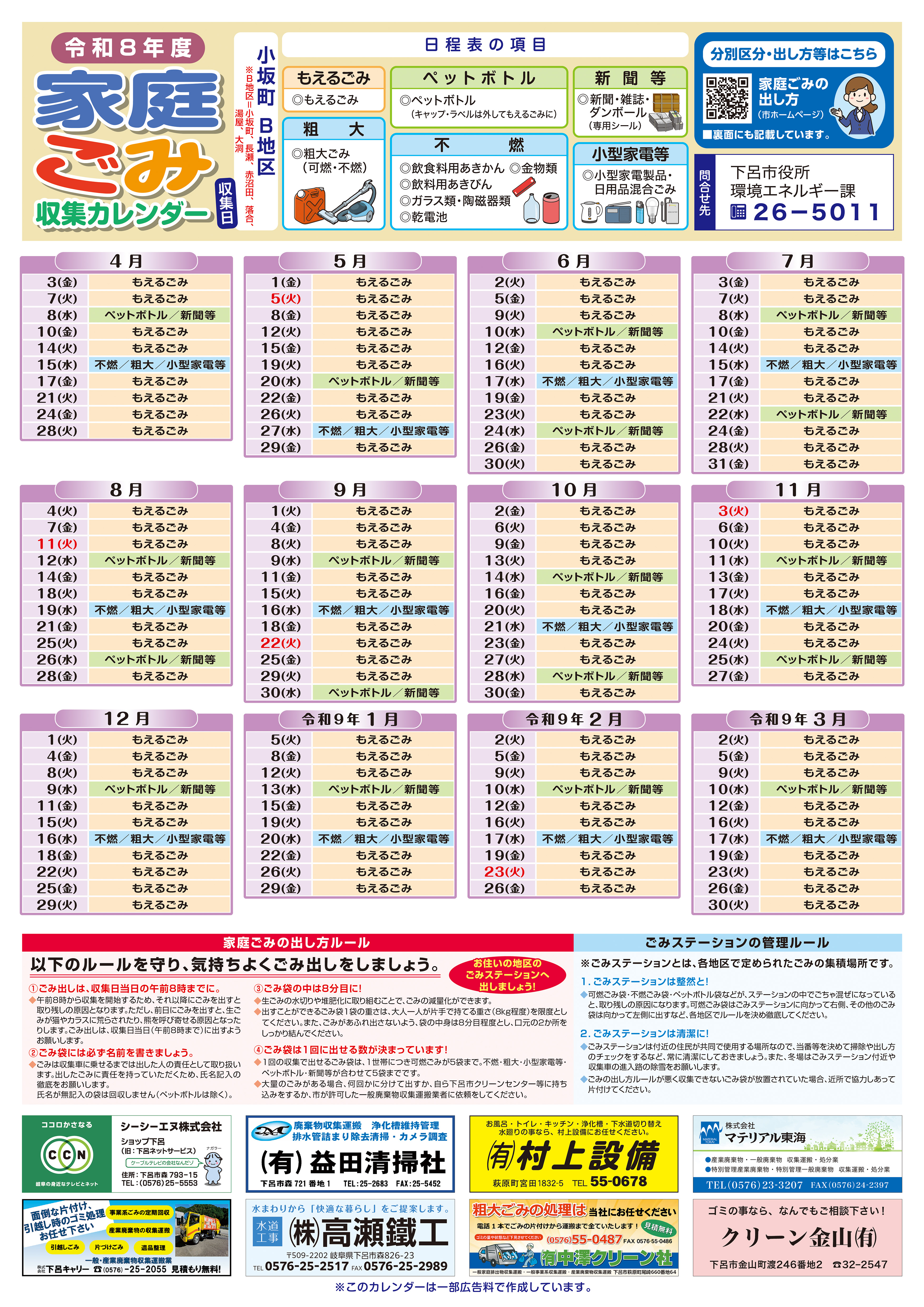 カレンダー裏面:ごみの分別区分および出し方 [その他のファイル/4.08MB]