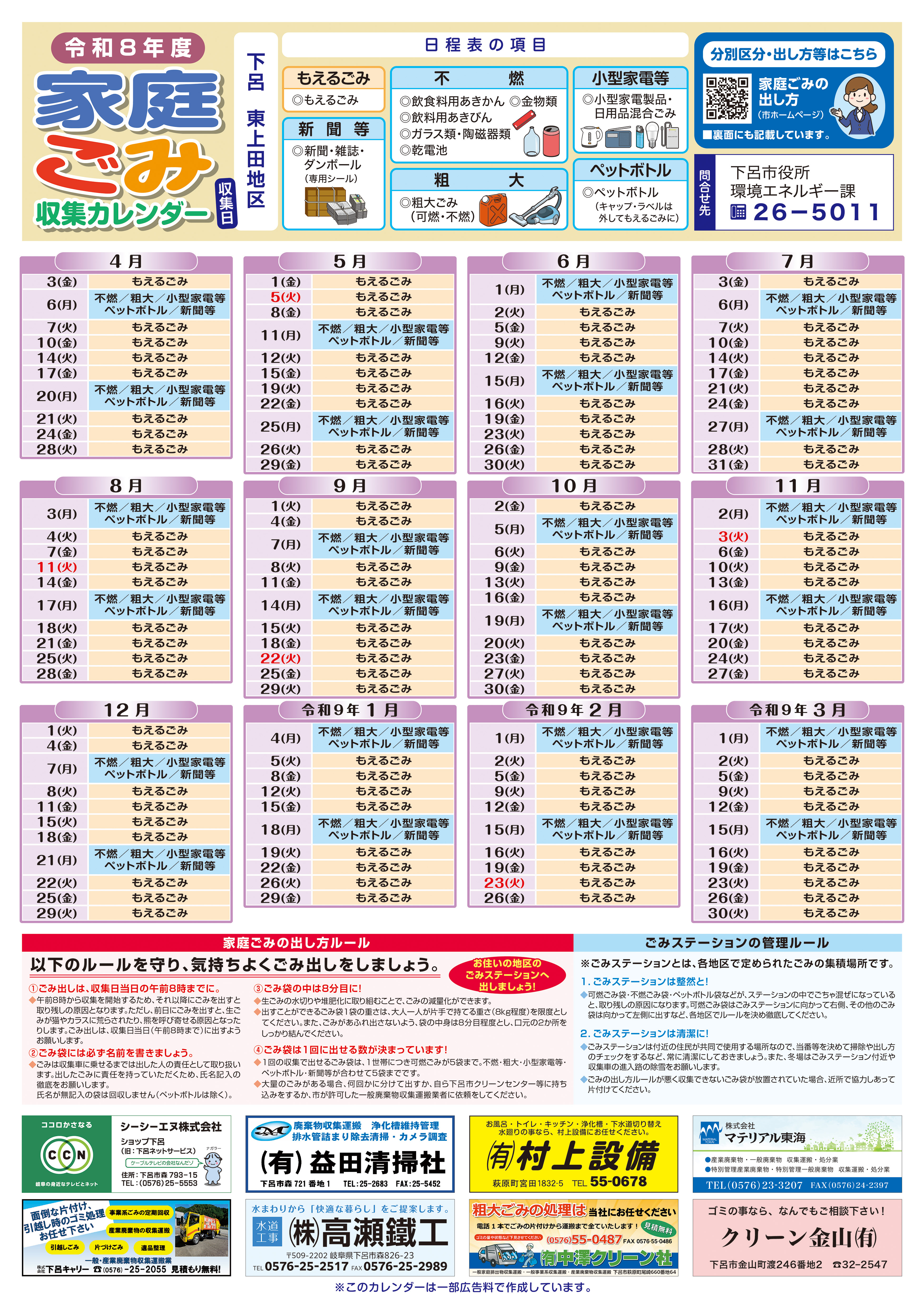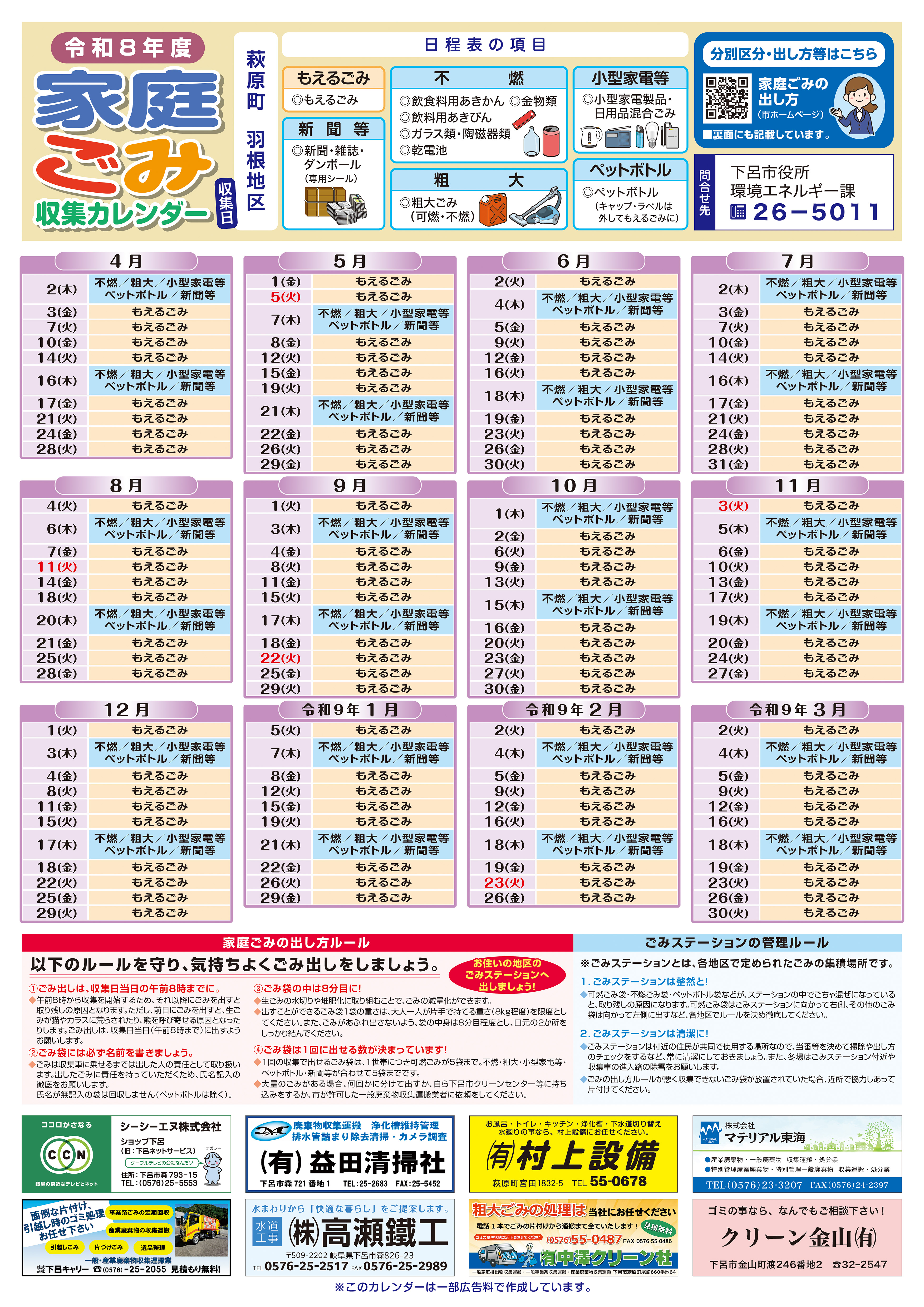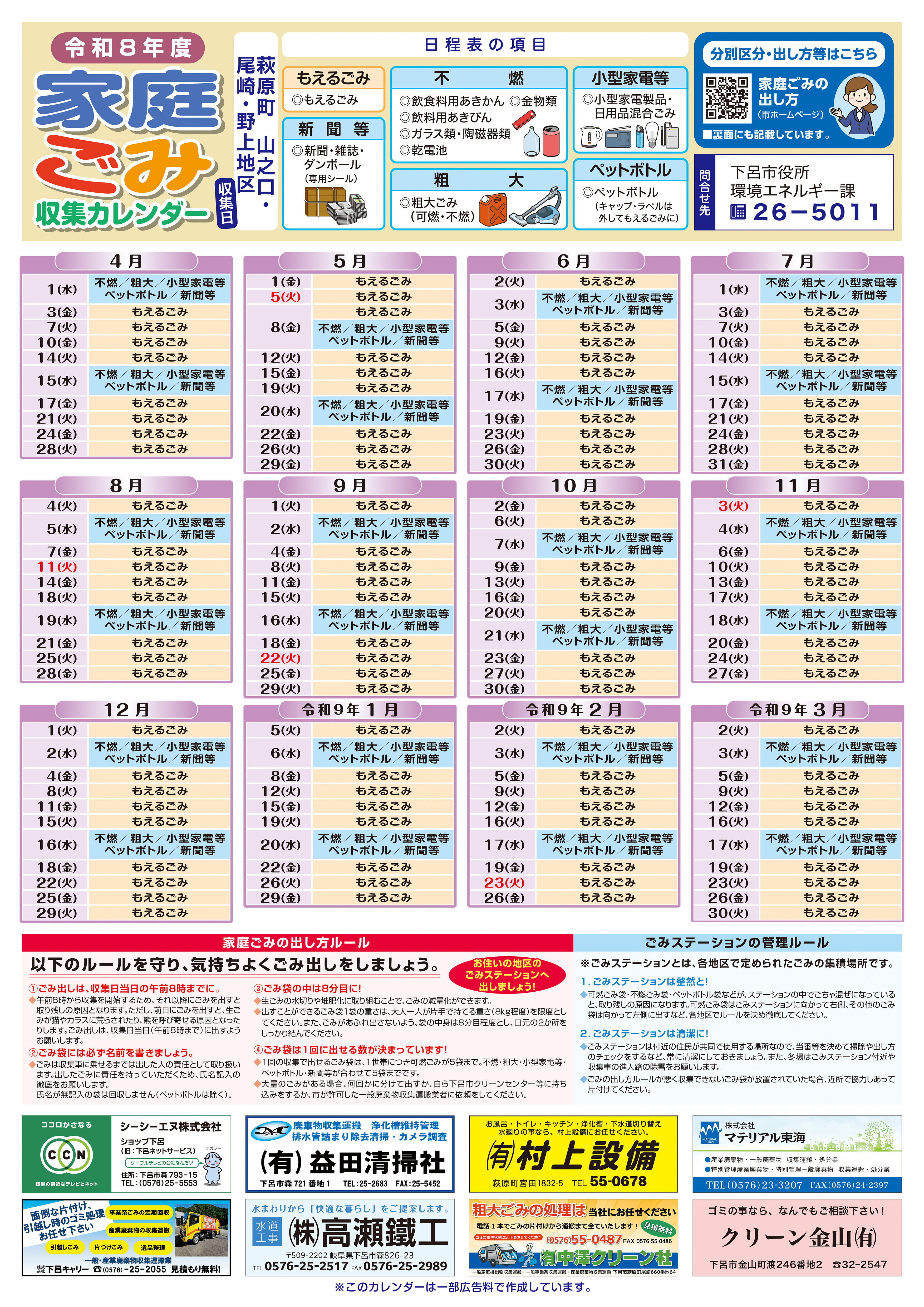 令和8年度のごみ収集日程をお知らせします