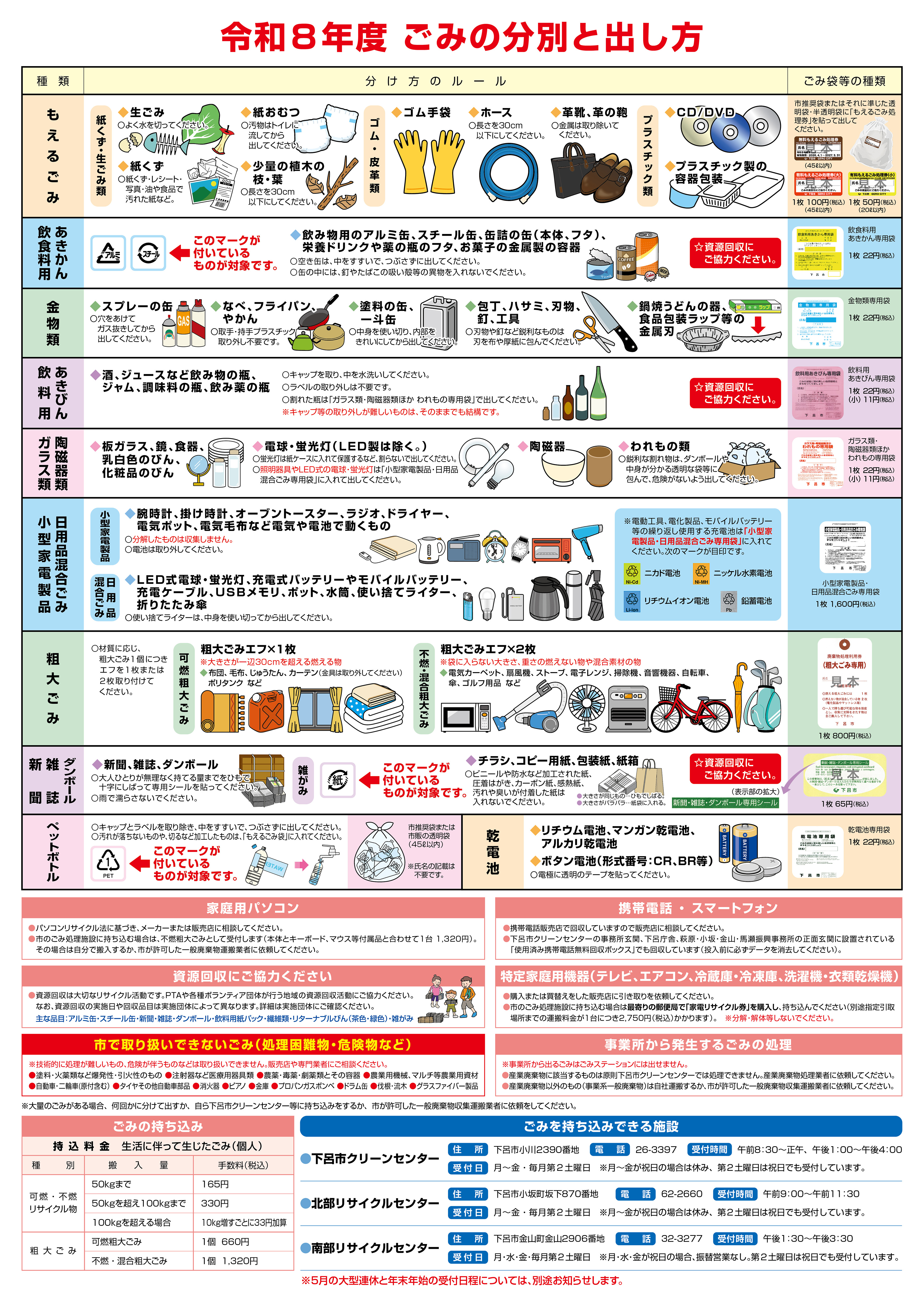 また、下呂市役所 市民サービス課、各振興事務所窓口や、下呂市クリーンセンターで配布しています。